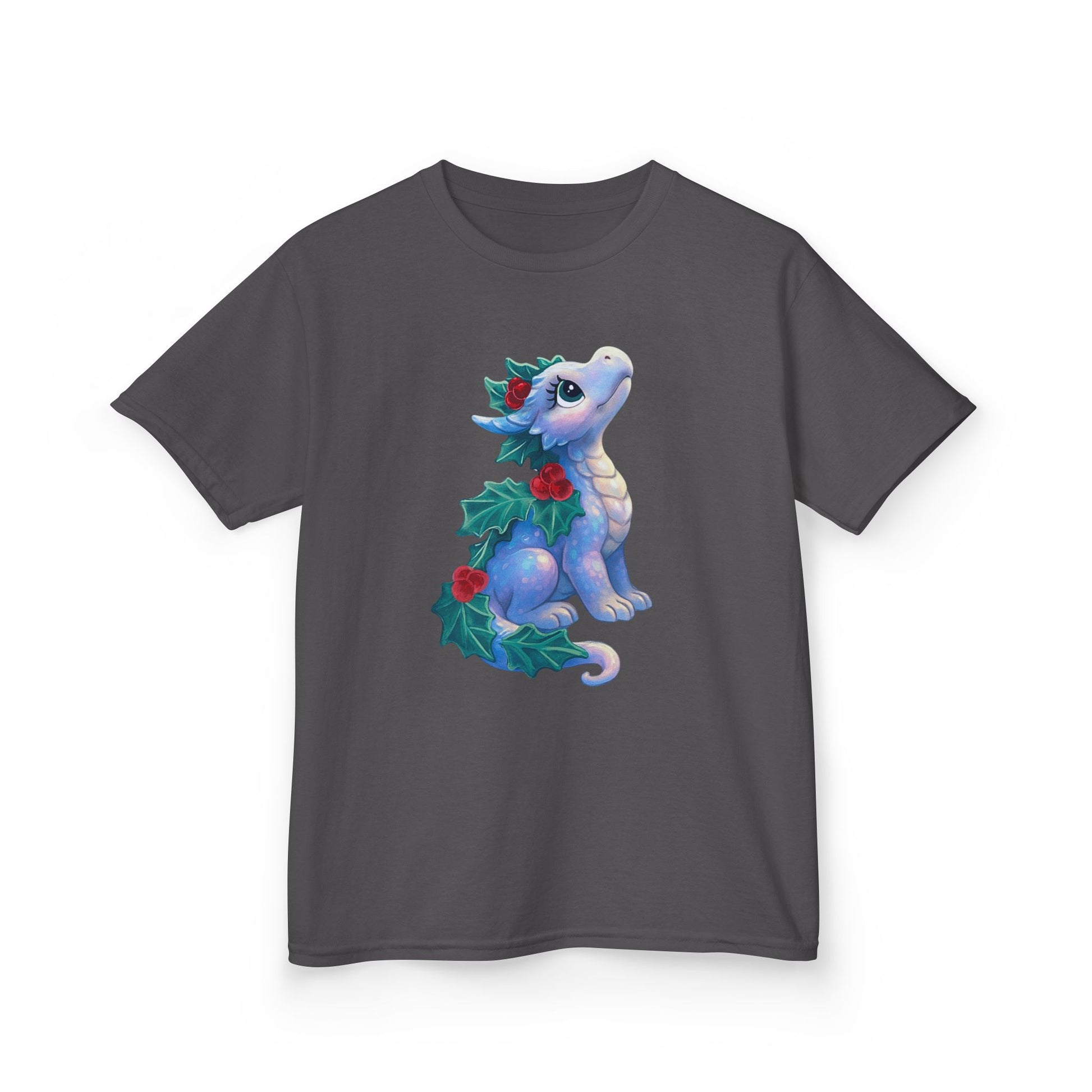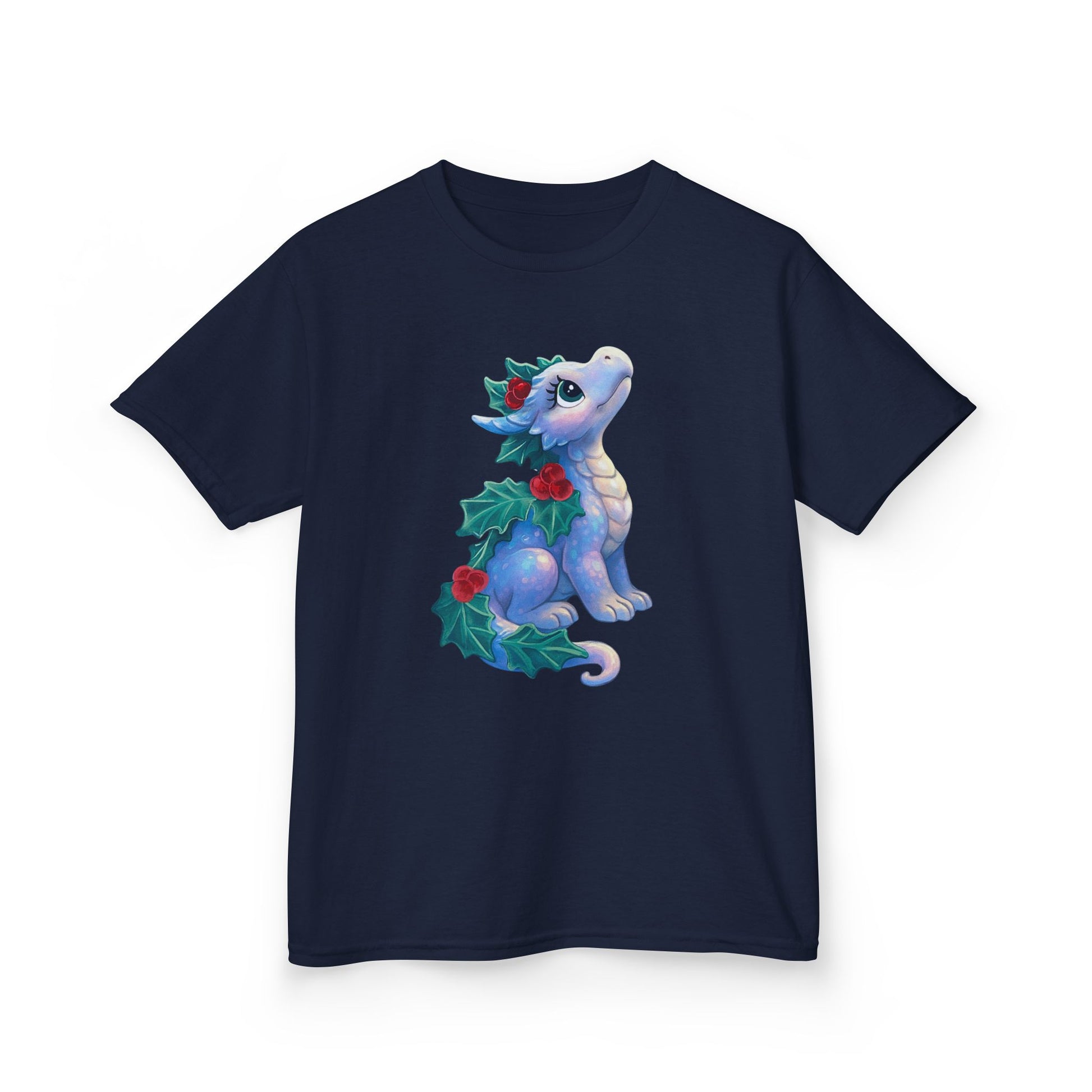 Kids Holiday Dragon Tee — Cute Festive Baby Dragon with Holly